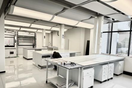 Die Curved Akustikpaneele aus Schaumstoff wurden in einem Labor in Südafrika verbaut. Diese Elemente werten den Raum optisch wie auch akustisch auf.