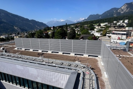 Beim Kantonsspital Chur durften wir auf dem Dach eine Lärmschutzwand erstellen um den Lärm der Rettungshelikopter zu mindern. Der Lärm kann so für die Anwohner reduziert werden.