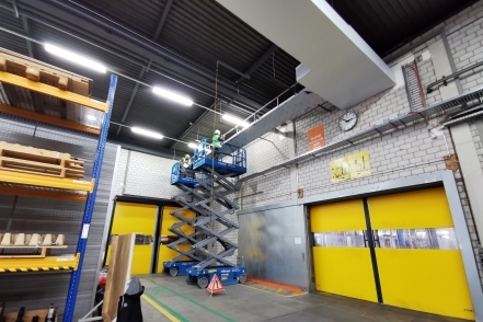 Die Akustikzylinder aus Schaumstoff wurden in einer Industriehalle verbaut. Die Absorber reduzieren den Lärm und sorgen für eine gute Akustik.