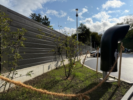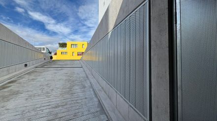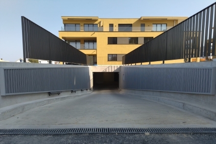 Bei der neu erstellten Wohnüberbauung konnten wir mit unseren Elementen aus Aluminium die Einfaht in die Einstellhalle schalltechnisch optimieren. Zum angrenzenden Grundstück wurde zusätzlich eine Lärmschutzwand aus Aluminium errichtet.