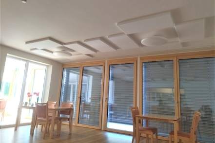 Die raumakustische Optimierung konnte dank den Akustikelementen aus dem Hause Süssmann AG, für das Wohn-u.Pflegezentrum erfolgreich umgesetzt werden.