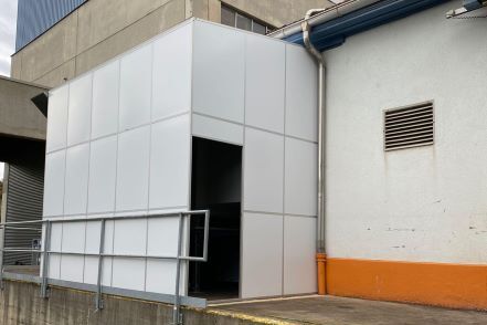 Um den Lärm der Abluftventilatoren zu reduzieren, wurde von uns eine Einhausung gebaut.