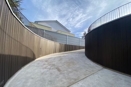 Die Einfahrt zur Tiefgarage ist mit exakt auf Maß gefertigten Siang-Mauerverkleidungselementen ausgestattet. Diese sorgen nicht nur für ein modernes und gepflegtes Erscheinungsbild, sondern bieten auch zuverlässigen Schutz vor Witterungseinflüssen – für eine dauerhaft attraktive Optik.