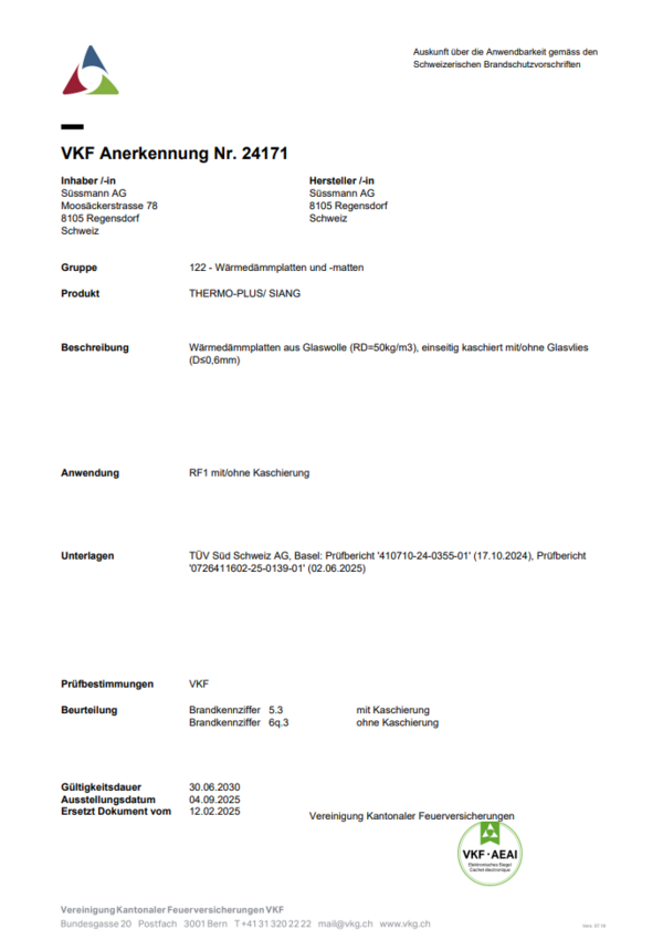 (Sie finden dieses Dokument auch als PDF unter Wärmeisolation > Zertifikate)