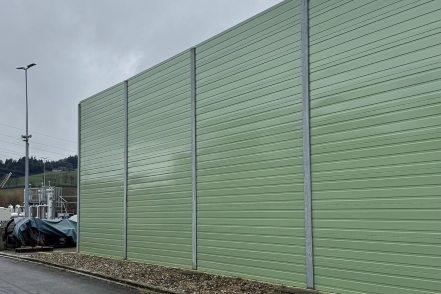 Im Aussenbereich einer Industriehalle durften wir eine Lärmschutzwand erstellen. Die Nachbargrundstücke werden durch die Lärmschutzwand optimal vom Lärm geschützt.